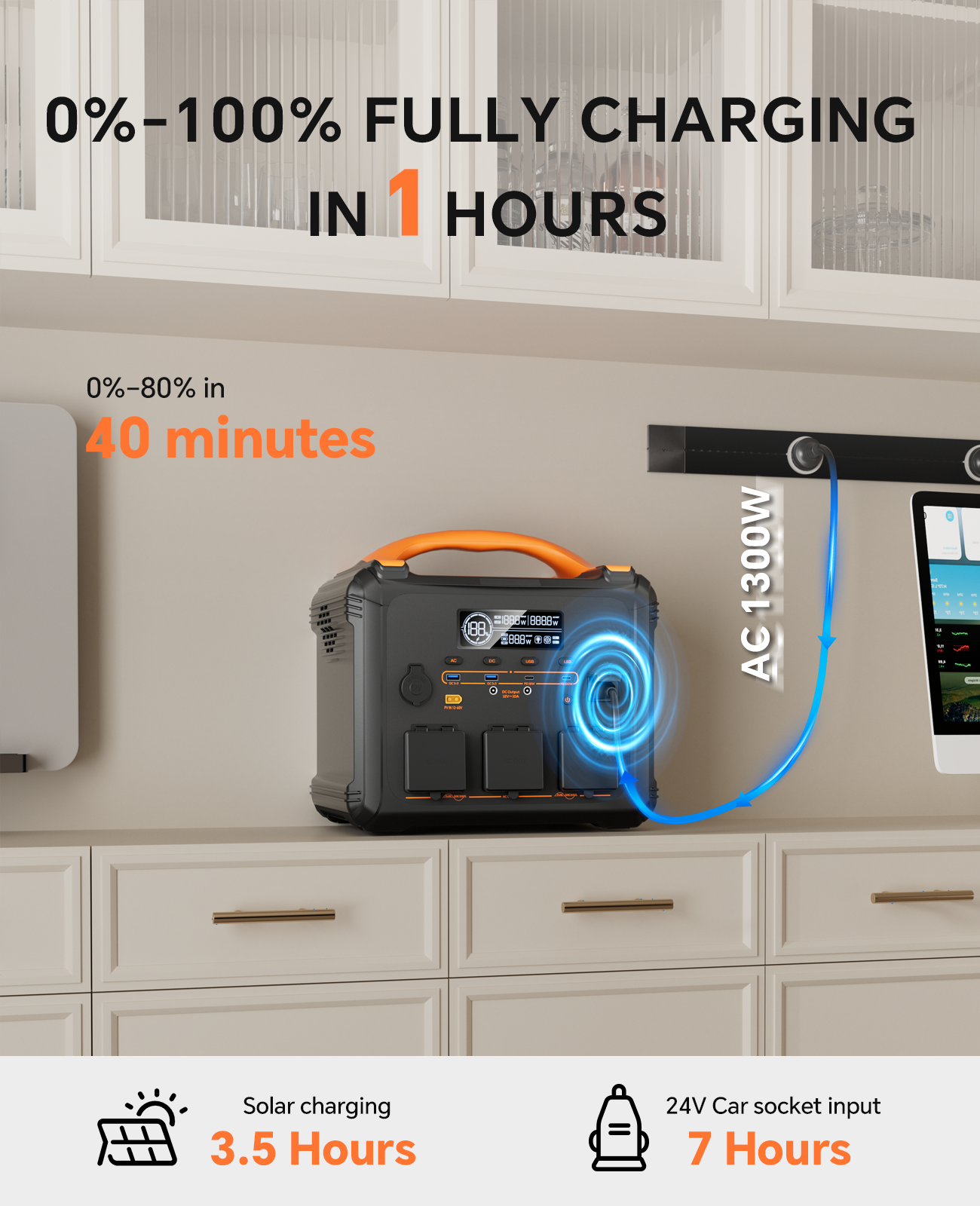 Recharge in 1.2 Hours: The Newsmy S1210 portable power station features a powerful 1102.5 Wh LiMnFePO4 battery that can be fully recharged in just 1 hours via a 1300 W AC input—ensuring it is always ready for use whenever you need it.