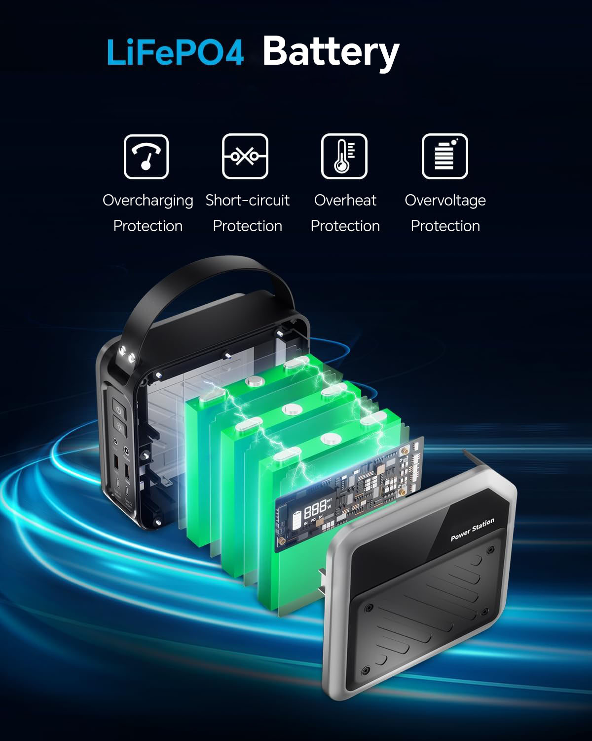 Features a 60,000mAh Lithium Iron Phosphate (LiFePO4) battery that delivers approximately 3,000 charge-discharge cycles for extended reliability.